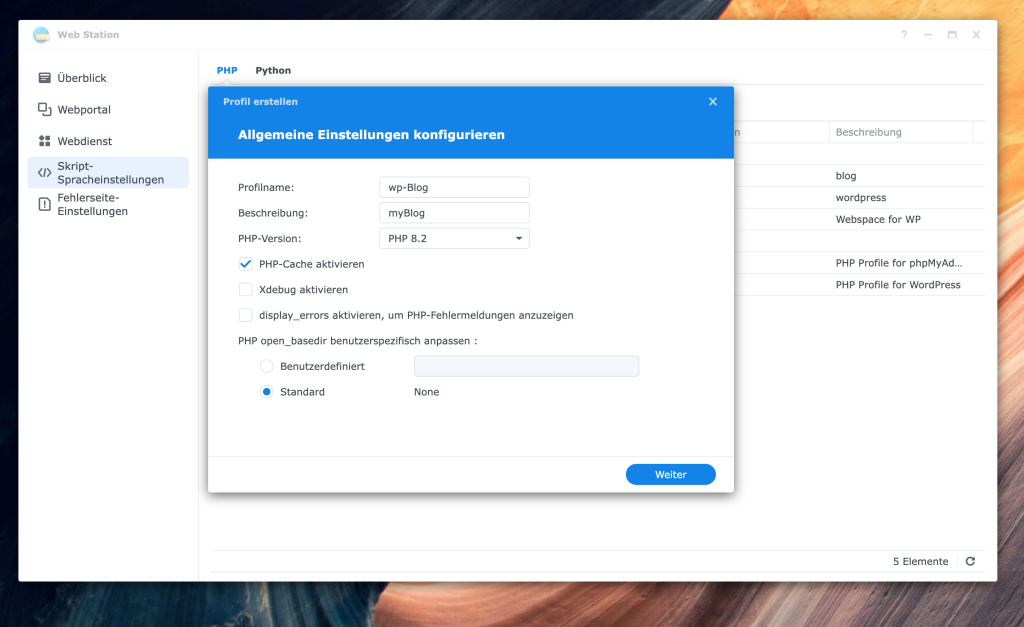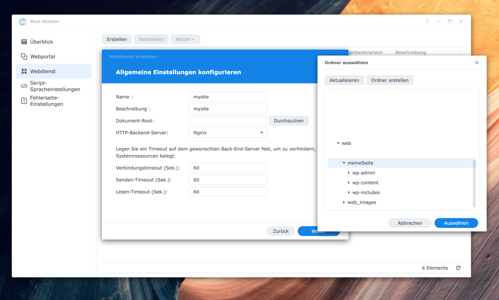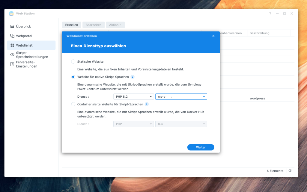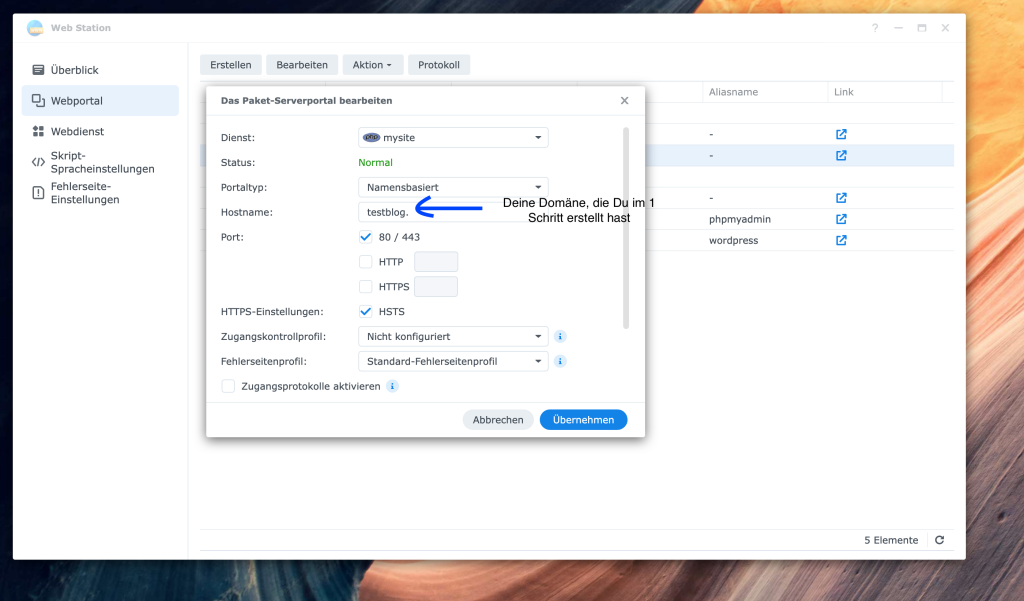 Jetzt sind wir nur noch einen Schritt davon entfernt, unsere WordPress-Seite im Browser zu erreichen. Dazu müssen wir ein Webportal in der Web Station erstellen, das als Zugangstor zu unserer Anwendung dient.